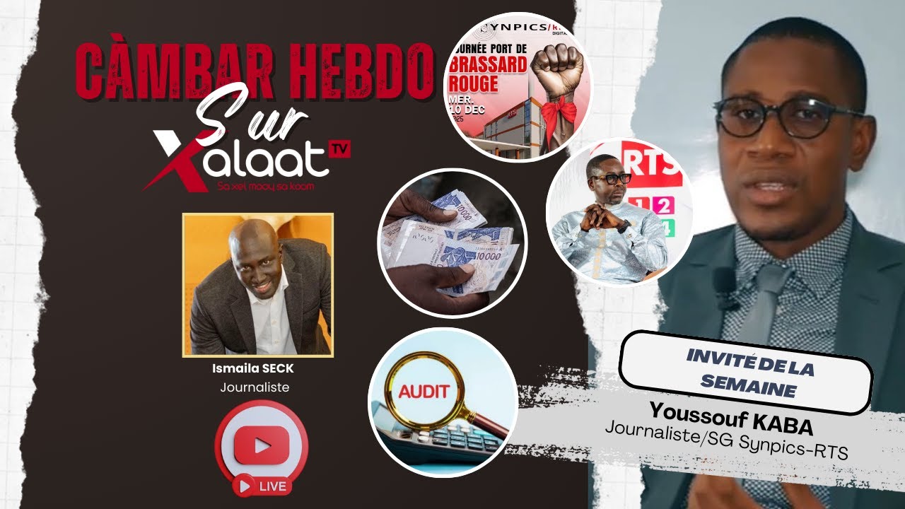 Ce samedi à 20h30 dans Càmbar Hebdo, nous recevons Youssouf Kaba, Secrétaire général du SYNPICS/Section RTS, pour un entretien consacré à la situation sociale à la Radiodiffusion Télévision Sénégalaise.